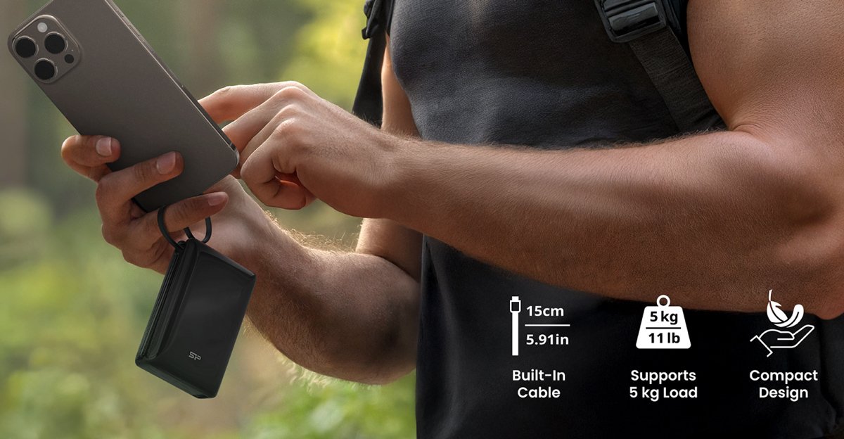 SILICON POWER power bank CP10 με καλώδιο USB-C, 2x θύρες εξόδου, 10000mAh, 20W, μαύρο